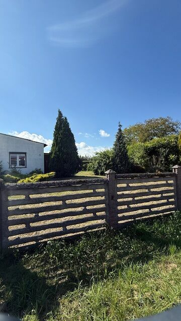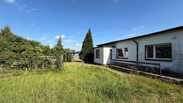 Budynek wymaga remontu dachu i stropu. Na działce znajdują się garaże nadające się raczej do rozbiórki. Działka ogrodzona płytą betonową, brama wjazdowa manualna, teren zakrzewiony i nasadzony drzewami owocowymi.